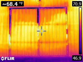 This picture is part of what you will receive with your storage consultation. The darker colors are places around the door where cool air is escaping in the early season, and warm air will escape in winter. Using this photo we can assess the energy lost and determine if it would be worth sealing these doors to reduce energy costs over the storage season.